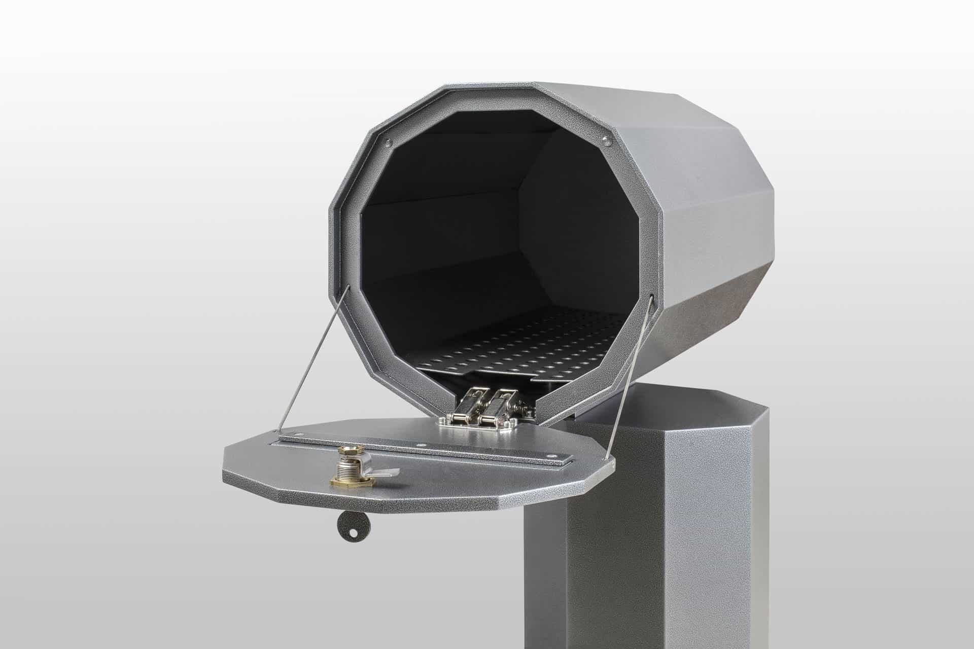 Le Studio Briand & Berthereau a coopéré avec la métallerie d’art Crézé pour créer et concevoir Plom. Réalisée en feuille d’aluminium 5 MM, la boîte aux lettres Plom a été un défi de conception pour Crézé. Le compas et la tige qui composent le processus d’ouverture de Plom est un mécanisme de précision.