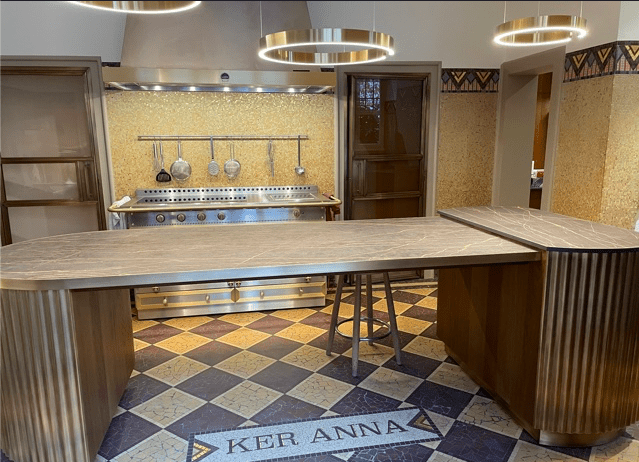 Le laiton a une apparence riche et luxueuse qui peut ajouter une touche d’élégance à une cuisine. Il peut être utilisé pour des éléments tels que les robinets, les poignées de porte, les luminaires ou même les ustensiles de cuisine, offrant un aspect esthétiquement agréable et chaleureux. Il peut être travaillé et fini de différentes manières, offrant ainsi une variété d’options de design. Il peut être poli pour un aspect brillant et miroitant ou vieilli pour créer une patine antique. Cela permet de l’adapter à différents styles de décoration, qu’ils soient modernes, traditionnels, industriels ou vintage. Le laiton est un matériau robuste et durable, résistant à la corrosion et à l’usure quotidienne. Il est moins susceptible de se ternir ou de se corroder par rapport à certains autres métaux. Cela en fait un choix attrayant pour les éléments de cuisine qui sont souvent exposés à l’eau, à l’humidité et à une utilisation intensive. Le laiton, avec sa combinaison élégante de durabilité et d’esthétique raffinée, s’impose comme le choix idéal pour tout projet d’agencement sur-mesure, apportant une touche de sophistication et de qualité à chaque détail.