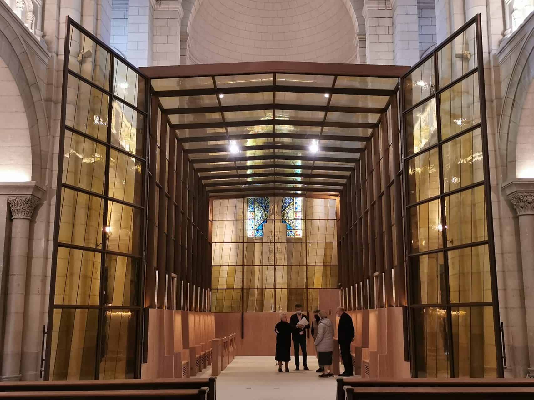 Nouvelle chapelle faite d’acier et de verre soufflé à la bouche, écrin dans une chapelle du